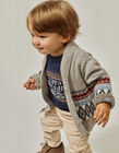 بدلة نوم من الفيلور للأولاد الصغار "نمر"، رمادي