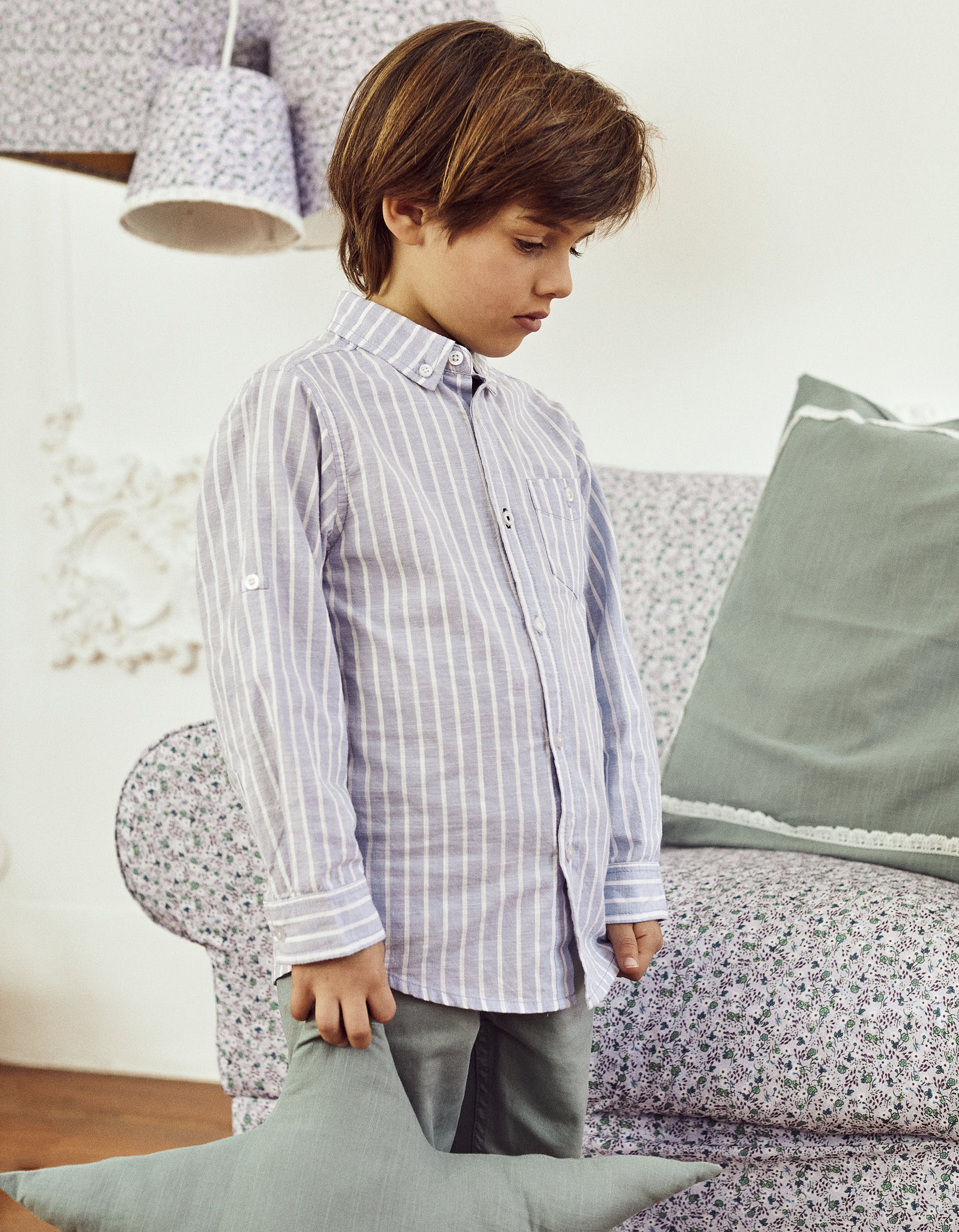 قميص نص كم بياقة ماو للأولاد، أخضر مائي