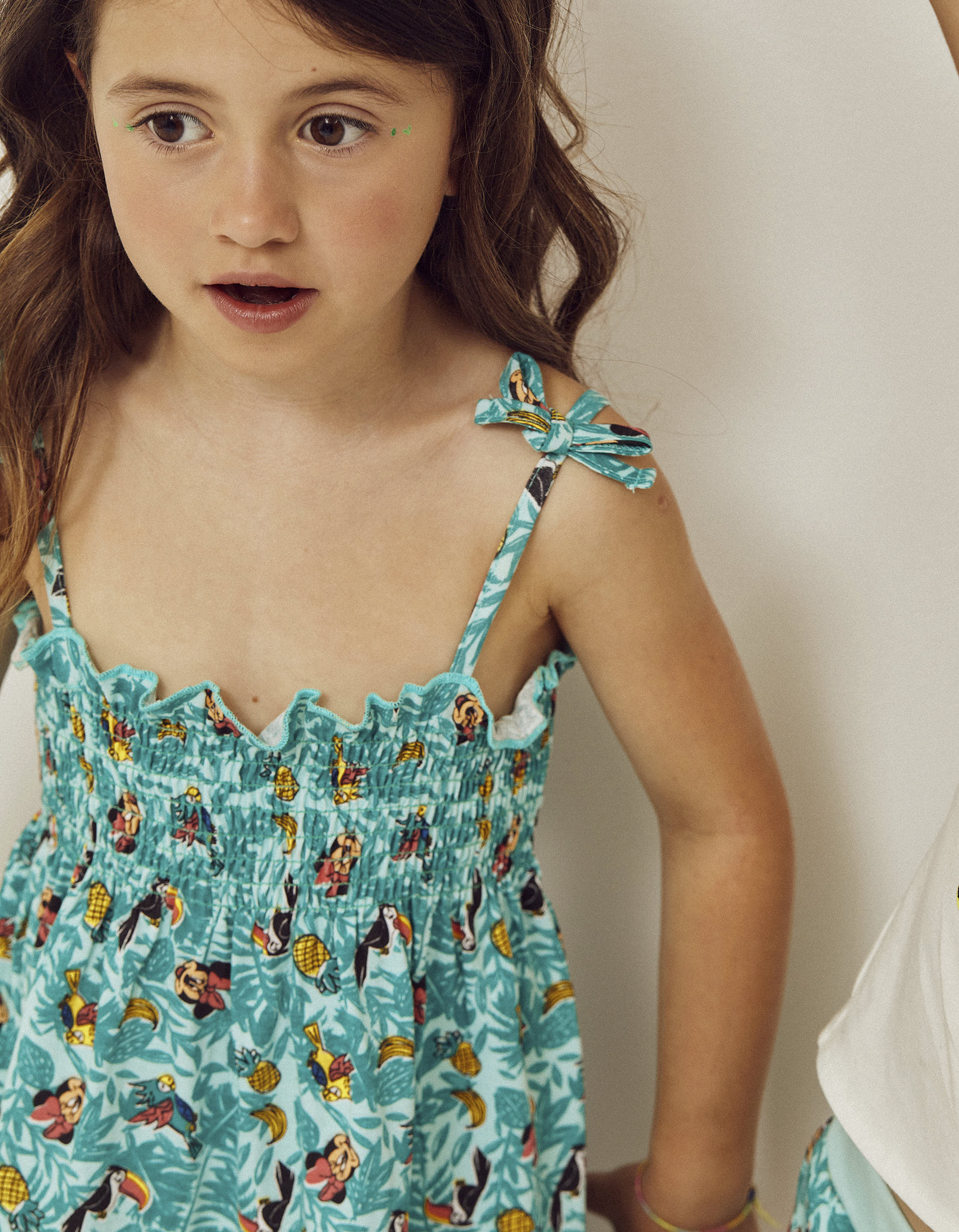 جمبسوت قطن وكتّان بتطريز إنجليزي للفتيات "B&S"، تركواز